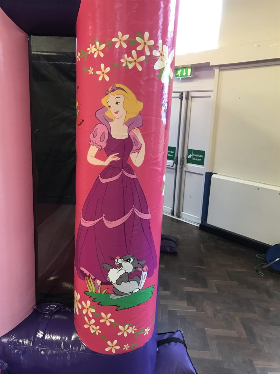 As well as all the usual jumping of a bouncy castle base, she can play among the exciting shapes inside, including arches, hoops and biff bash pillars. You’ll be amazed at the games they can play and the fun they will have, disappearing inside for ages as their fairy tale fantasies run riot. Two pretty Disney-style princesses are on hand to welcome your little girl and her friends, along with a host of cute woodland creatures, and the whole thing is finished in pretty pink and purple to keep those rough boys away so the girls can play in peace!