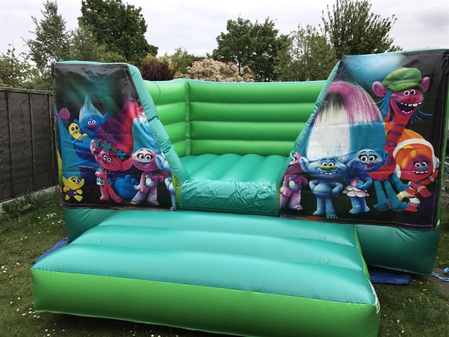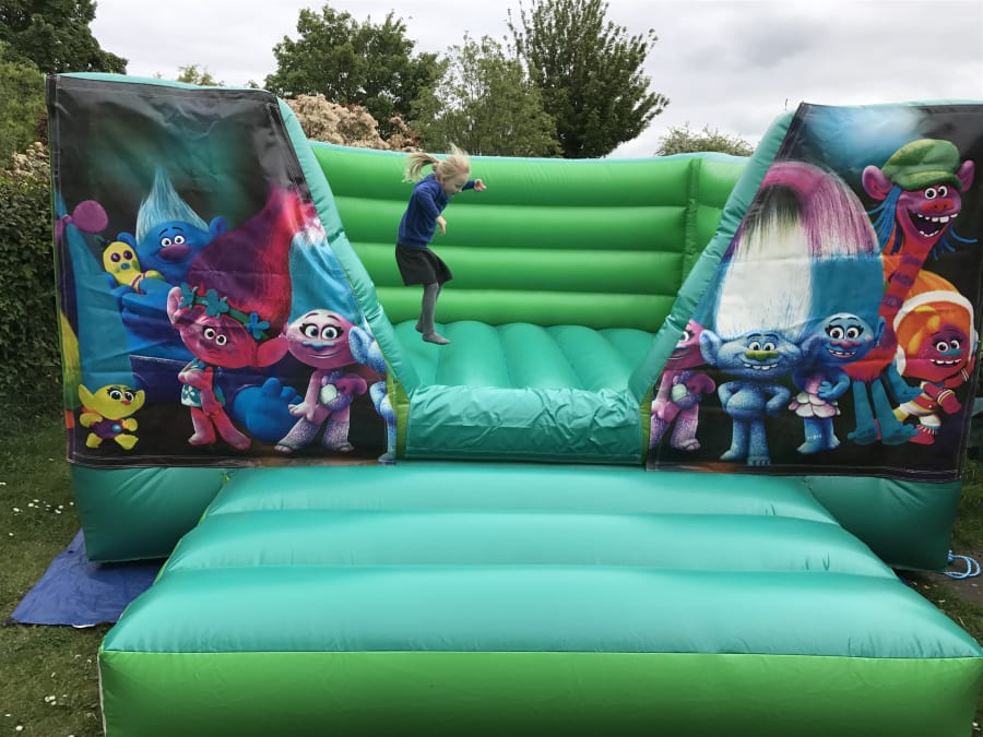 We also have a trolls bouncy castle with a slide.