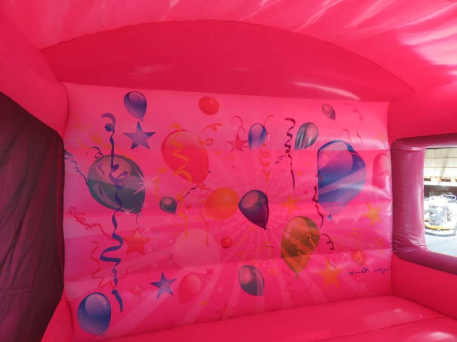 Perfect for any occasion, this colourful castle features balloons, stars and streamers all across the front, down the sides of the slide and across the back wall. There’s a huge bouncing area inside and a super slippery slide at the front. The box style makes it fully enclosed, like a den for older kids, while the net sides mean you can still keep an eye on younger bouncers to make sure they are safe.