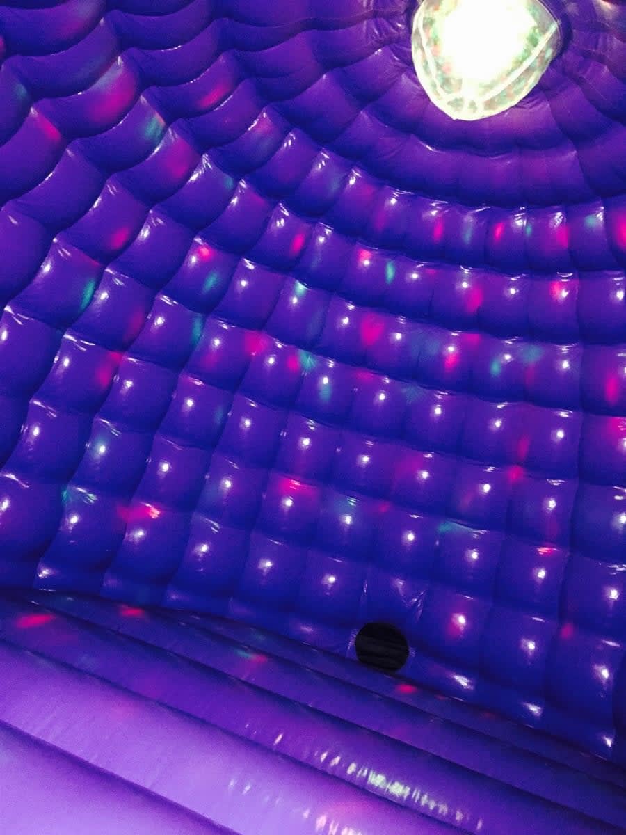 It's a new type of inflatable, and it really is a show stopper. The disco dome comes in very vibrant colours, suitable for girls or boys. It's been really popular in Bexley!