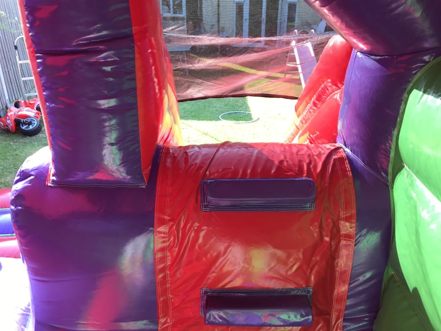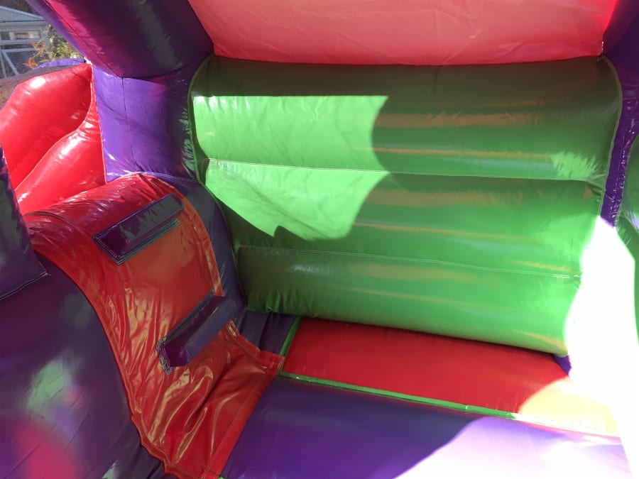 Brand new multi coloured bouncy castle with the added fun factor of a front slide.