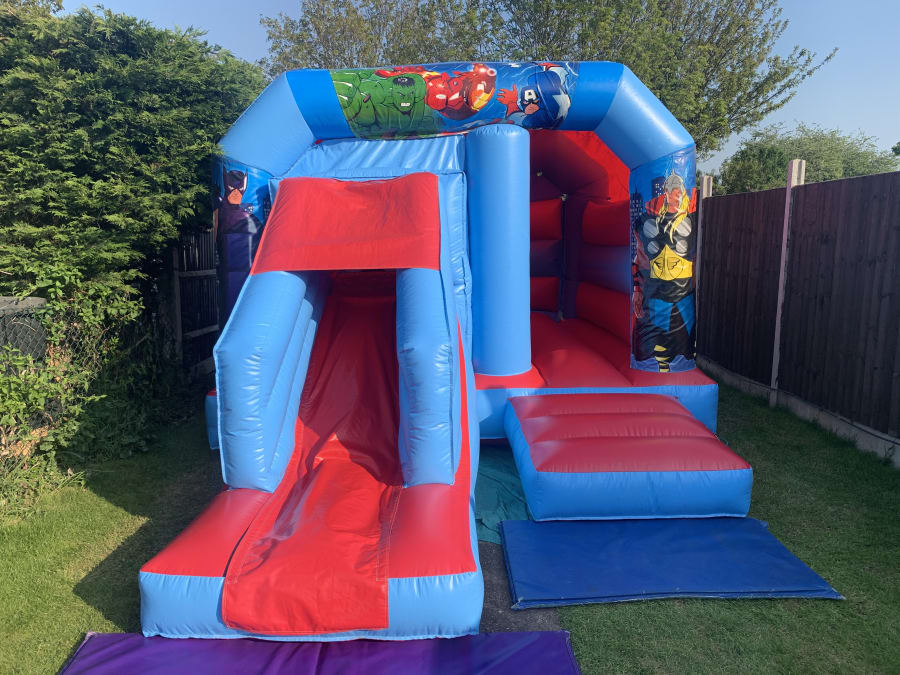 If your kids love Hulk and Spiderman then this is a must have inflatable at any Marvels loving children birthday parties. This red and blue bouncy castle includes a front side slide (a side slide is also available by contacting us).