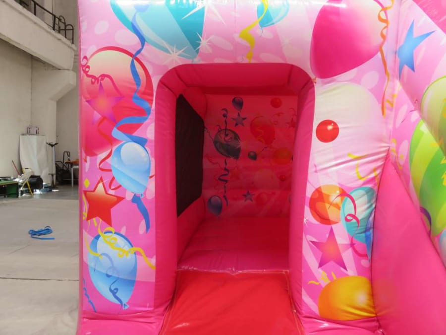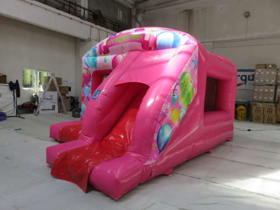 Perfect for any occasion, this colourful castle features balloons, stars and streamers all across the front, down the sides of the slide and across the back wall. There’s a huge bouncing area inside and a super slippery slide at the front. The box style makes it fully enclosed, like a den for older kids, while the net sides mean you can still keep an eye on younger bouncers to make sure they are safe.