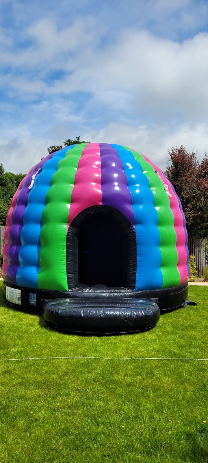 When you book this you also get a 600watt Bluetooth Speaker and two disco lights within the price, and because it’s a proper dome and not a pretend square one, the inside remians dark just like a dance floor except super bouncy!