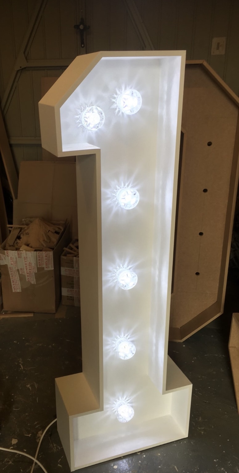 Combine your number one light-up LED number with another and you have the ideal decoration for a teenage party. Just talk to our team about multi-buy prices. Alternatively, you can hire your number one as part of an 18th birthday or 21st birthday numbers as a package. Just click the links for details.
