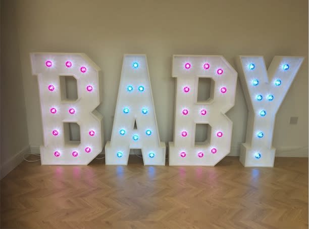 A new baby can be the biggest news of all, so make your announcement in style with these four foot high light up letters