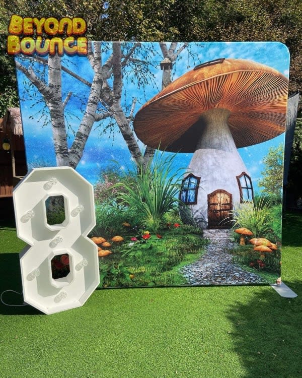 So our enchanted woodland and fairy backdrop measures 8ft x 8ft. The height is mostly important to parties at home due to the standard ceiling heights or specialist venues that require low height equipment, all while maintaining enough coverage for the perfect photos.