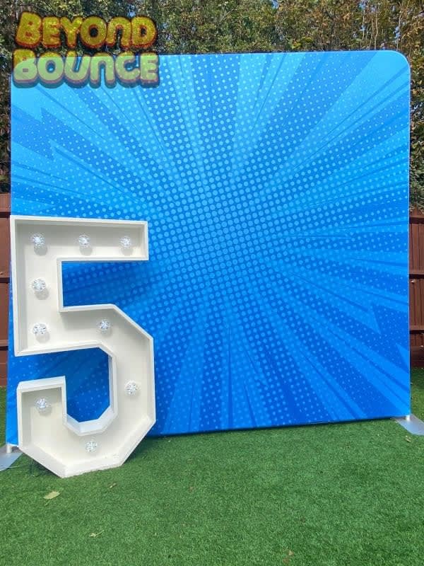 This blue backdrop was designed with comic book superheros in mind, backdrop measures 8ft x 8ft. The height is mostly important to parties at home due to the standard ceiling heights or specialist venues that require low height equipment, all while maintaining enough coverage for the perfect photos.