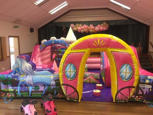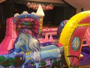 Most little girls love princesses, so we helped produce this amazing product to include a bouncy castle, slide, soft play and a ball pit with air jugglers to keep the plastic balls floating in the air.