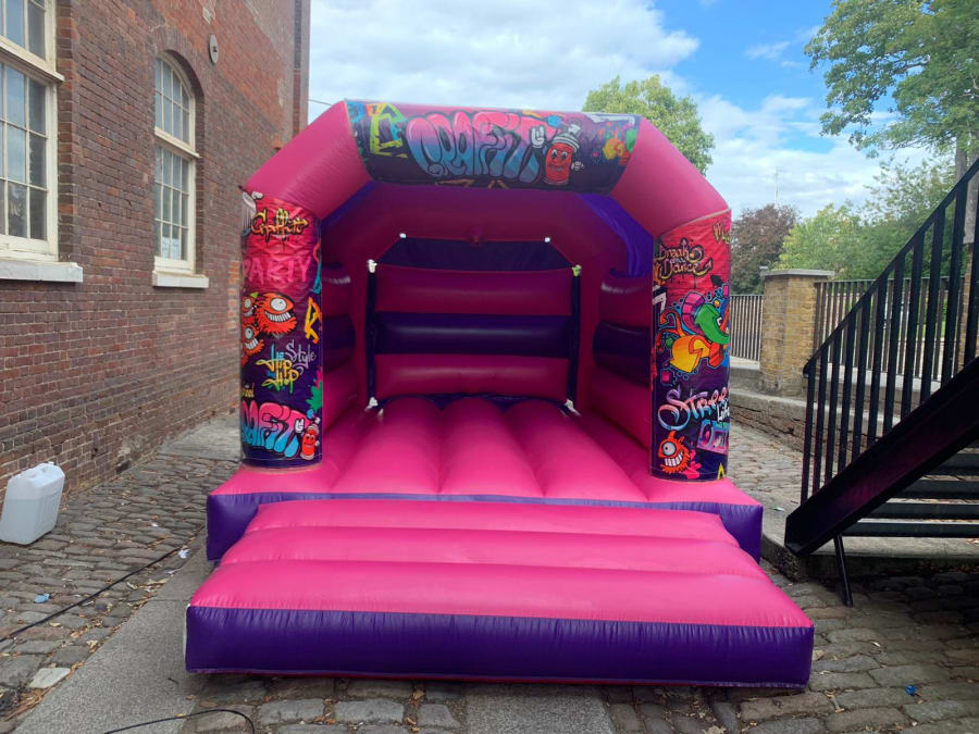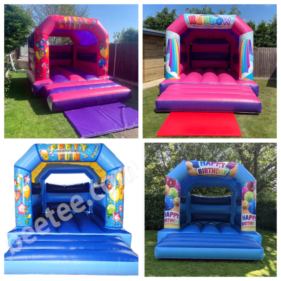 This package should be a simple way of choosing any colour 12ft x 15ft inflatable plus your choice of Theme. Each theme consists of 3 Velcro banners that are quickly attached to the top and front sides after inflating the bouncy castle replacing the printed party theme.